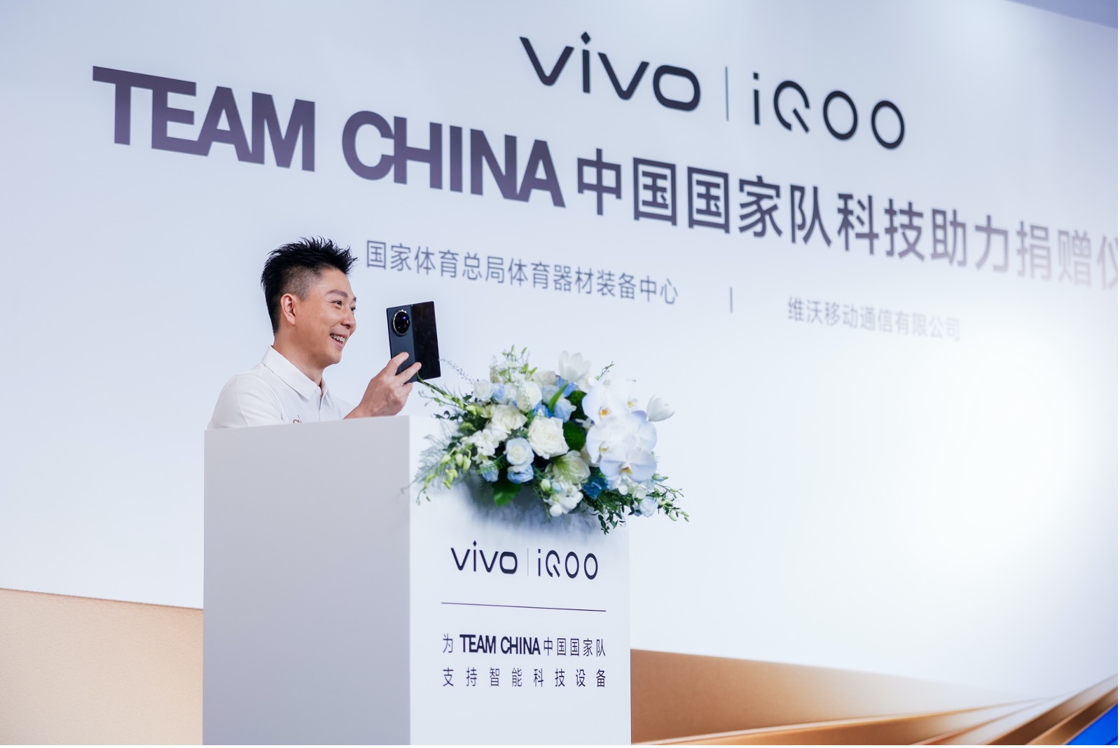 vivo品牌副总裁贾净东代表品牌向TEAM CHINA中国国家队赠出智能科技设备贾净东在现场强调了vivo人文科技理念与竞技体育精神的同频共振,提到:“作为全球智能手机行业的引领者,vivo致力于在科技赛道不断突破创新,为用户创造极致的产品和服务体验,同时也积极担当中国科技企业责任,不遗余力地用科技实力为社会创造价值,助力体育强国,在为国家荣誉而战的赛场上贡献vivo的力量。相信此次vivo向TEAM CHINA中国国家队的捐赠,会是双方共同追求卓越、实现共赢的重要开端,未来我们将协同探索科技与体育的深度融合,推动中国体育事业的蓬勃发展!”