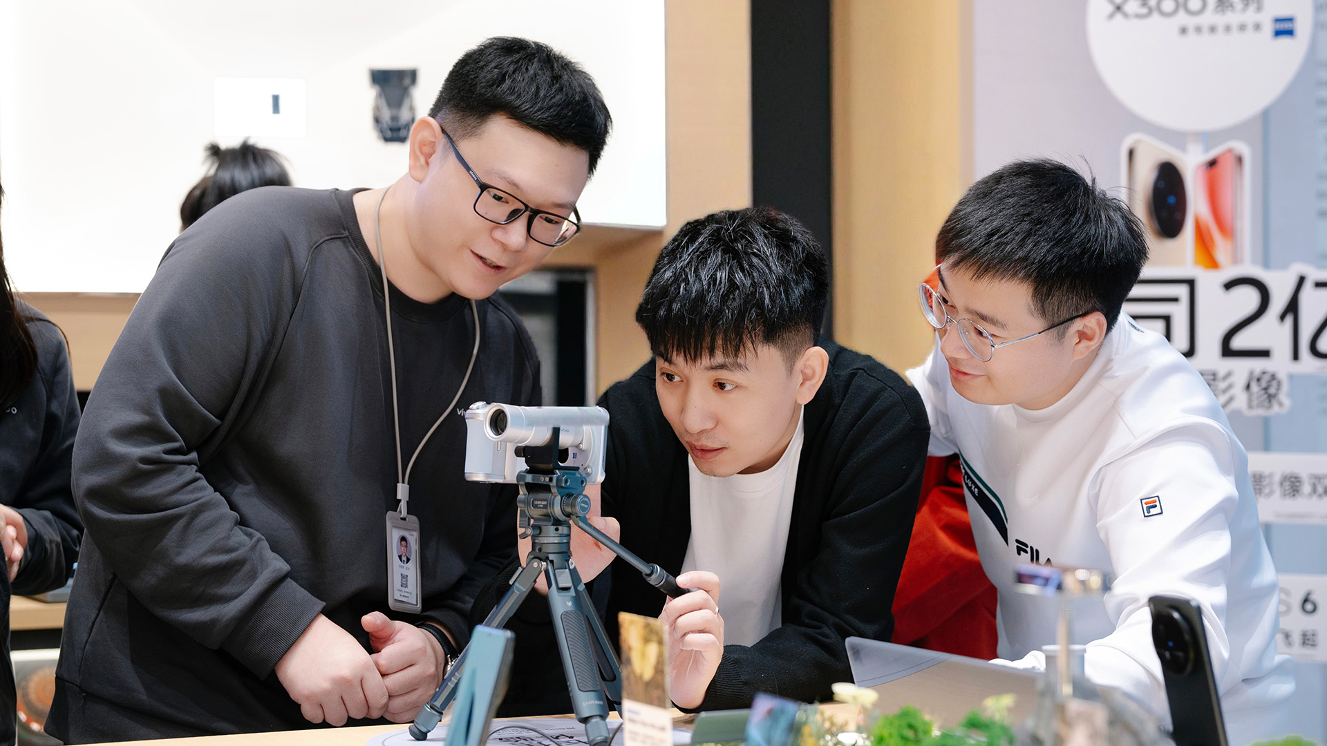 现场人头攒动,用户纷纷体验最新发布的vivo X300系列影像功能此外,一层不仅有长焦、微距、夜景、人像、Live Photo等功能的单点实拍体验,更有直播、演唱会等集合多重影像功能的融合场景体验。在眼前的直播场景中,以往感知度有限的“真实色彩”“稳定传输”等核心能力也更容易被用户所理解、所看到。值得一提的是,影像馆内还展出了vivo影像生态产品,如增距镜、vivo Vision探索版等,以便用户一站式体验齐全。