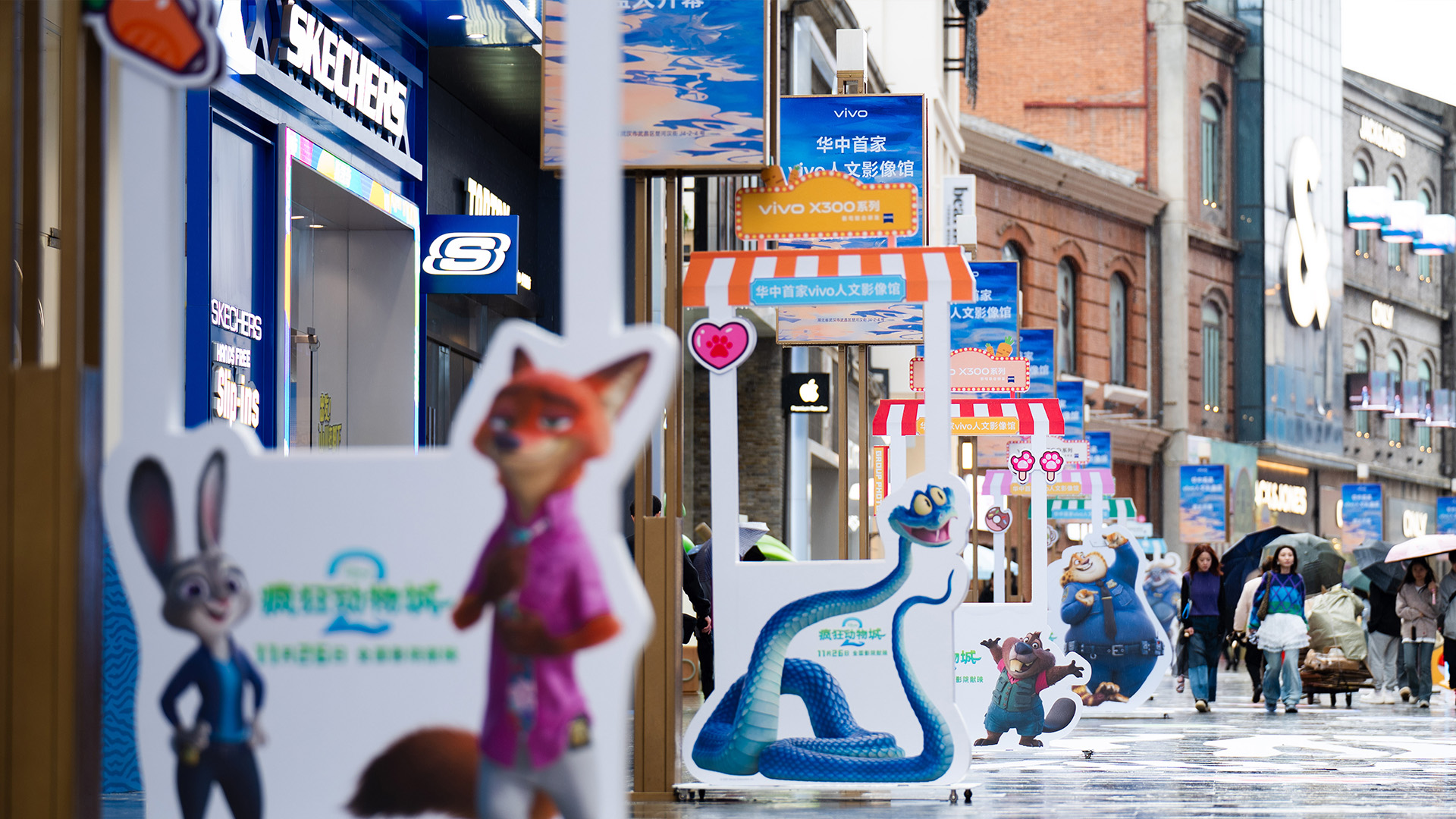 vivo在楚河汉街打造《疯狂动物城2》主题痛街这部全球影迷翘首以盼的续作《疯狂动物城2》也将于11月26日正式上映,vivo作为电影《疯狂动物城2》电影联合推广官方合作伙伴,进一步与知名电影IP握手合作。