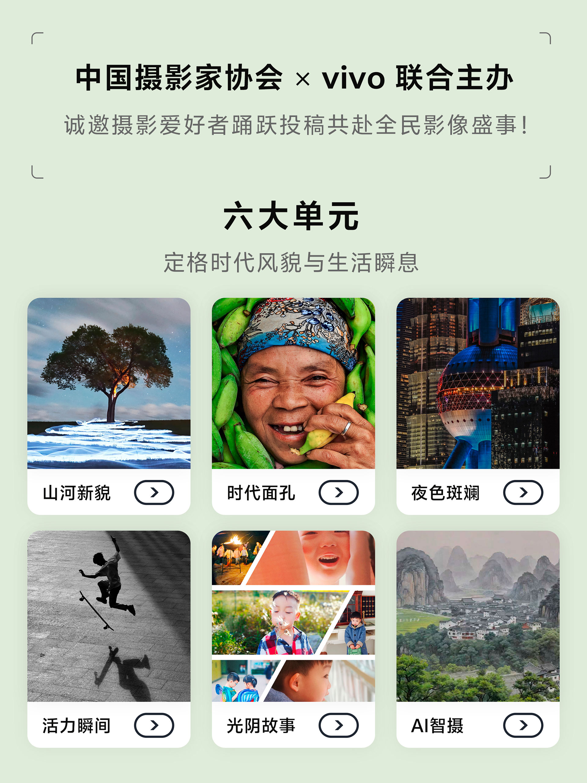 第二届中国手机摄影大展于3月30日至7月26日开放征稿第二届中国手机摄影大展的启动,是科技赋能移动影像的又一次生动实践,标志着其国民艺术化进程迈入新阶段。vivo将继续以技术为锚、人文为帆,携手中国摄协与广大创作者,在“人人可及、万物可叙”的光影世界中,共同书写移动影像的时代新篇章。