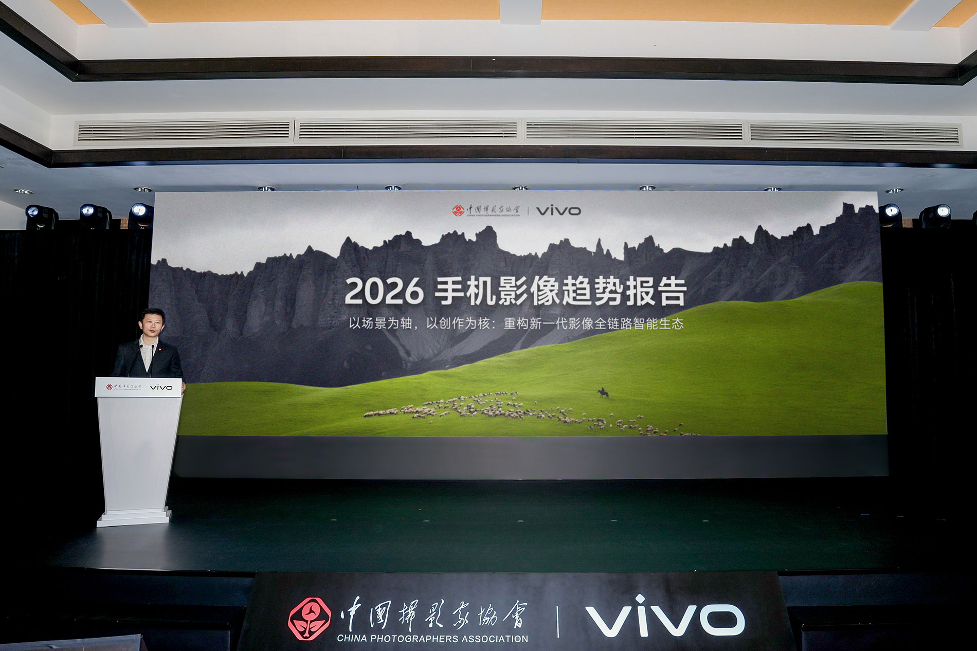 启动仪式现场,vivo与中国摄协共同发布《2026手机影像趋势报告》。报告主题为“以场景为轴,以创作为核:重构下一代影像全链路智能生态”,系统梳理了移动影像发展的核心特征与未来方向,从场景焕新、专业突破、审美提升、AI赋能、行业协同五个维度,为行业构建起科技、文化与全民化三位一体的发展范式。