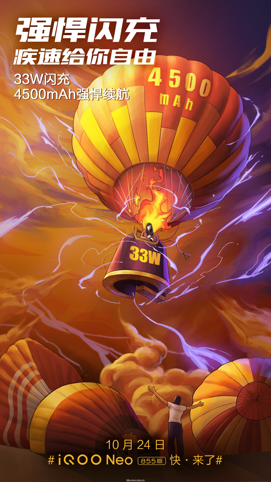 不仅如此,iQOO Neo 855版还配备了33W闪充和4500mAh超大电池,前者只需10分钟即可充入4500mAh超大电池的25%,后者则可以提供更长的续航时间,真正实现“回血快、续航久”,让重度手机用户也可以摆脱电量焦虑。