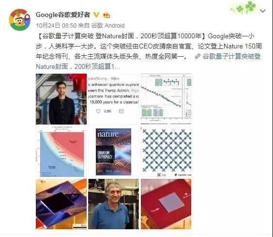 谷歌宣布实现“量子霸权”