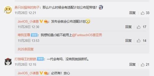 值得一提的是,vivo Funtouch OS项目经理@JoviOS_小诸葛在回复用户评论时表示:发布会上会公布升级计划,很多旧机型都会适配新系统,所以旧机型用户不必担心。