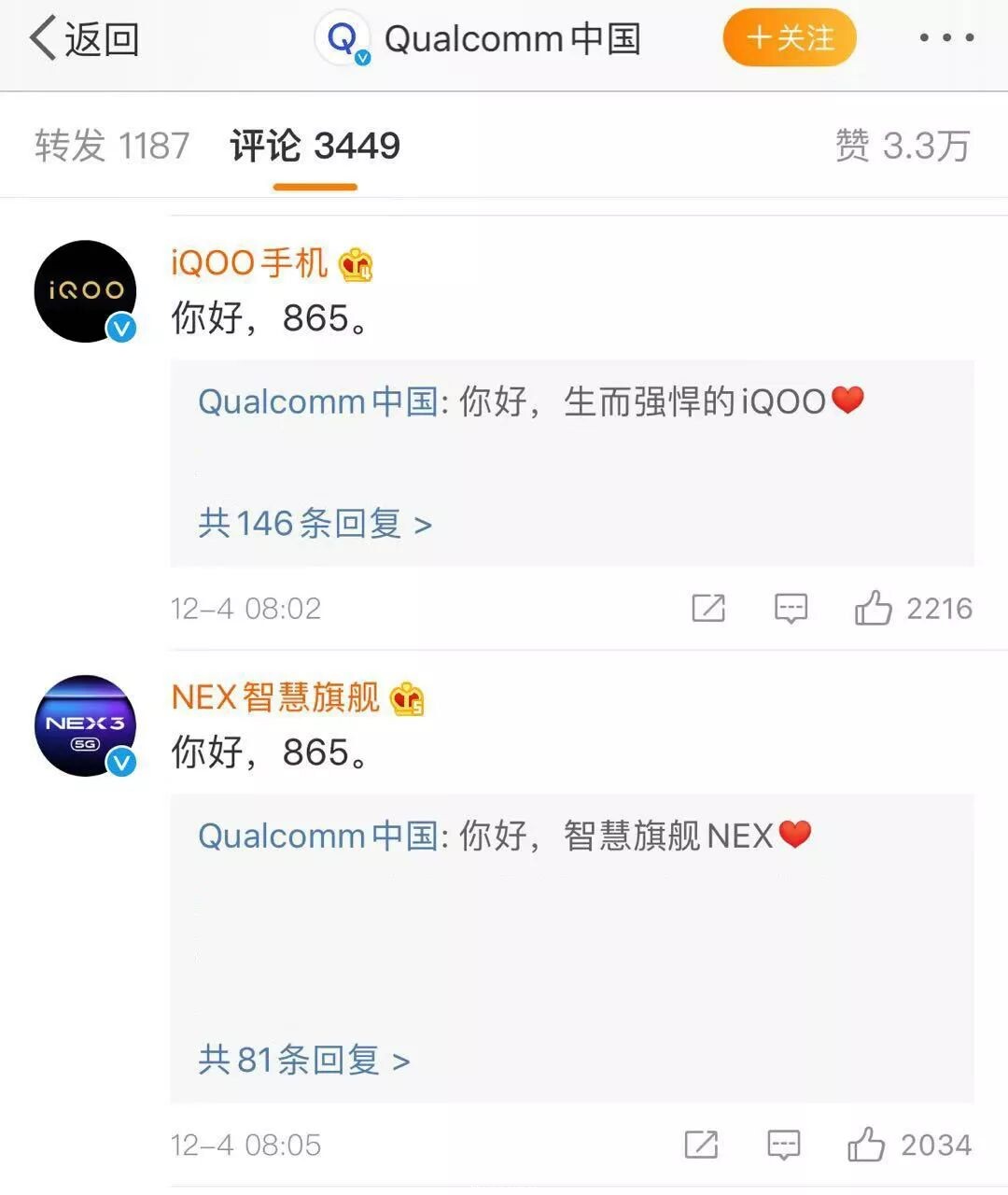 12月4日,高通在美国夏威夷正式发布8系列最新旗舰级处理器骁龙865,新处理器进一步优化了5G和AI方面的性能。高通也在当天官宣NEX和iQOO将成为首批搭载全新骁龙865的移动平台,让已占据国内5G手机销量半壁江山的vivo如虎添翼。