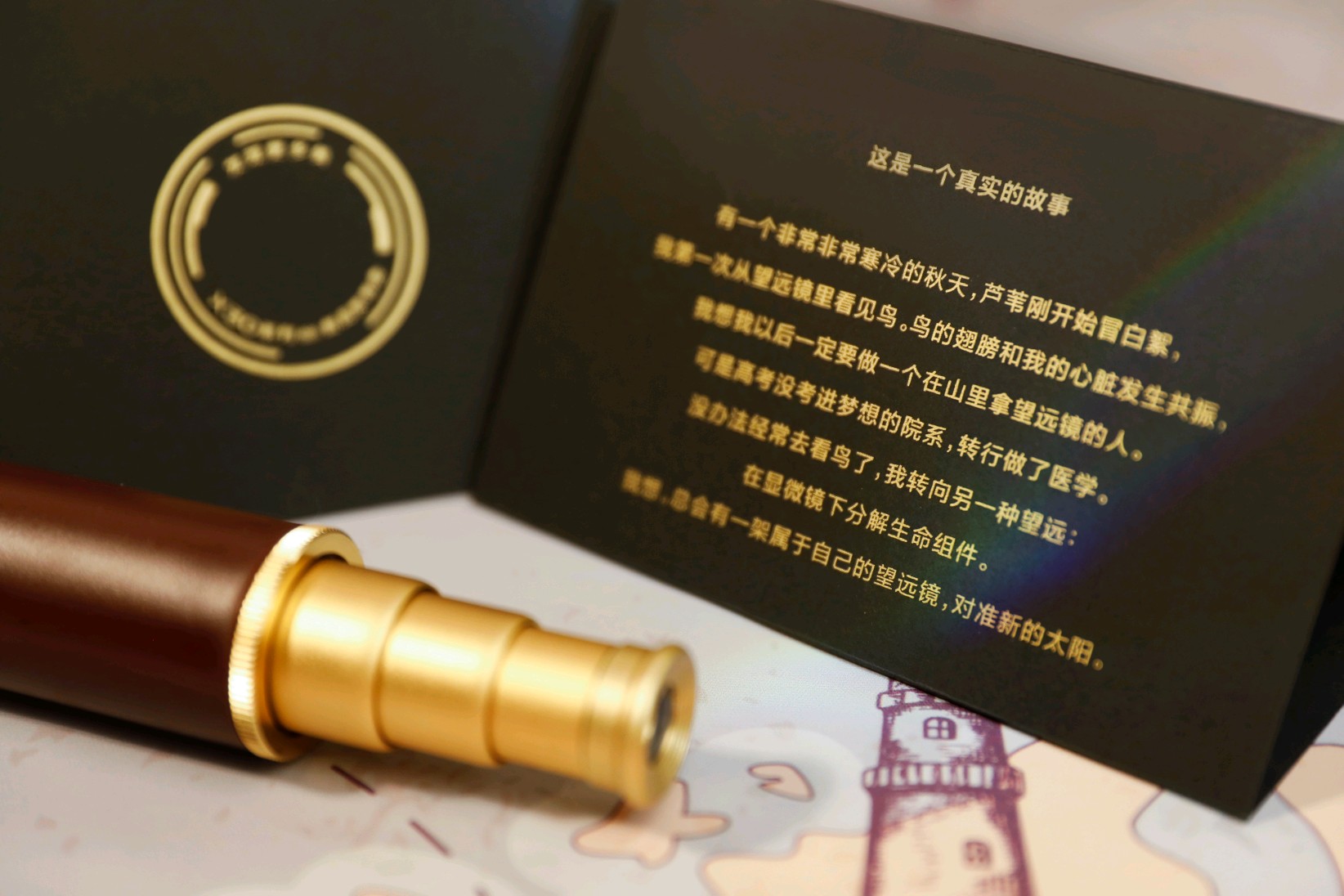 翻开邀请函的纸质卡片,完全展开后我们可以看到:除了有将于12月16日在桂林愚自乐园正式发布的发布会信息外,还有与望远镜有关的真实暖心故事,在卡片的最后则印有二维码,通过扫描后,我们发现了更多动人的望远故事。