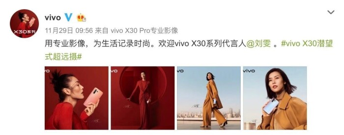 现在vivo X30已经官宣了系列代言人——国际超模刘雯,并放出了一组代言人的超级大片,大表姐携手vivo X30,在中国红的背景下,将质感、时尚、霸气诠释得淋漓尽致,只能说不愧是我们,红得有底气!