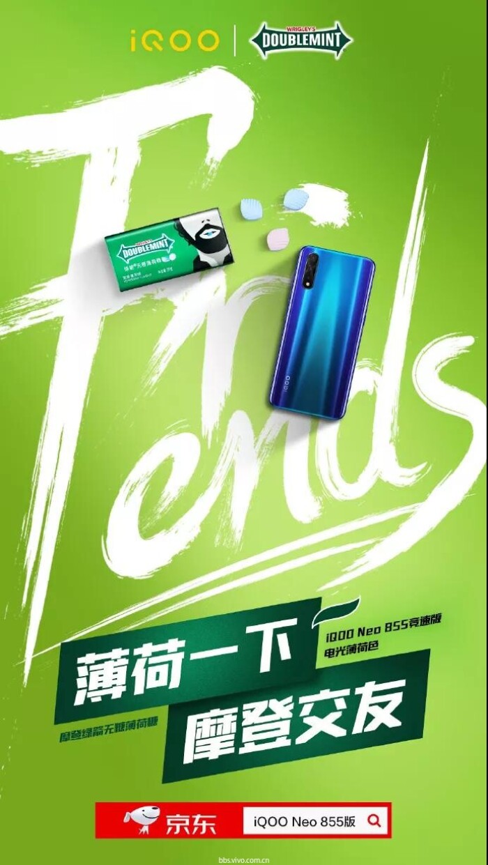 DD点评 新机带来新系统,好玩更疾速(期待的搓搓手)~电光薄荷“牵手”无糖薄荷糖12月9日,@iQOO手机官方微博与@绿箭-你我清新开始共同推出#薄荷一下,摩登交友#活动,转发微博并艾特最亲近的朋友,就抽一人送出iQOO Neo 855竞速版手机一台,被艾特的好友还可以获得等同手机价格数量的绿箭薄荷糖。诱惑满满,你参与了吗?