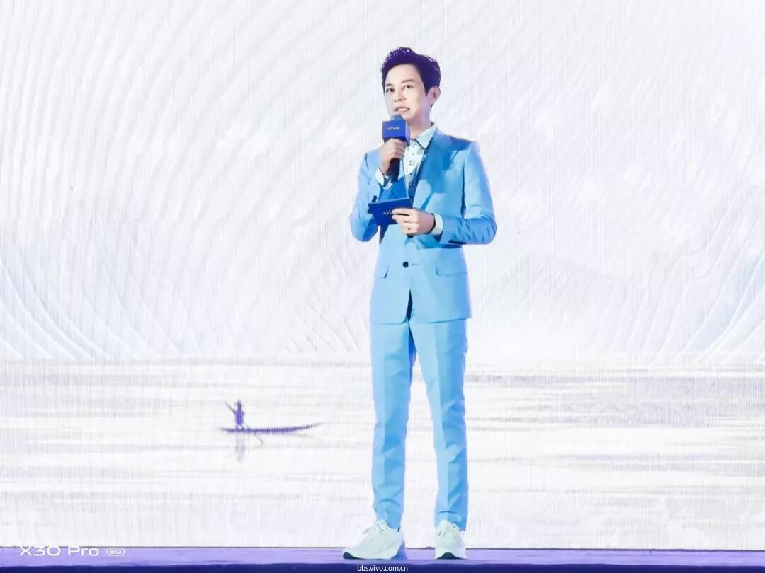 发布会正式开始,主持人何炅登台,舞台全景,何老师全身照,何老师半身照,X30 Pro 一机拍完。