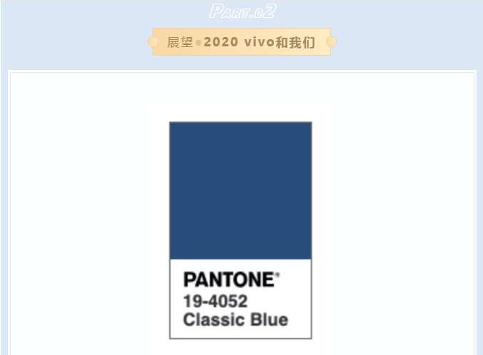 潘通发布2020年年度颜色为——经典蓝 这或许是某种奇妙的缘分和预言 2020年,vivo的蓝 要越发光亮璀璨,铺满更远的远方
