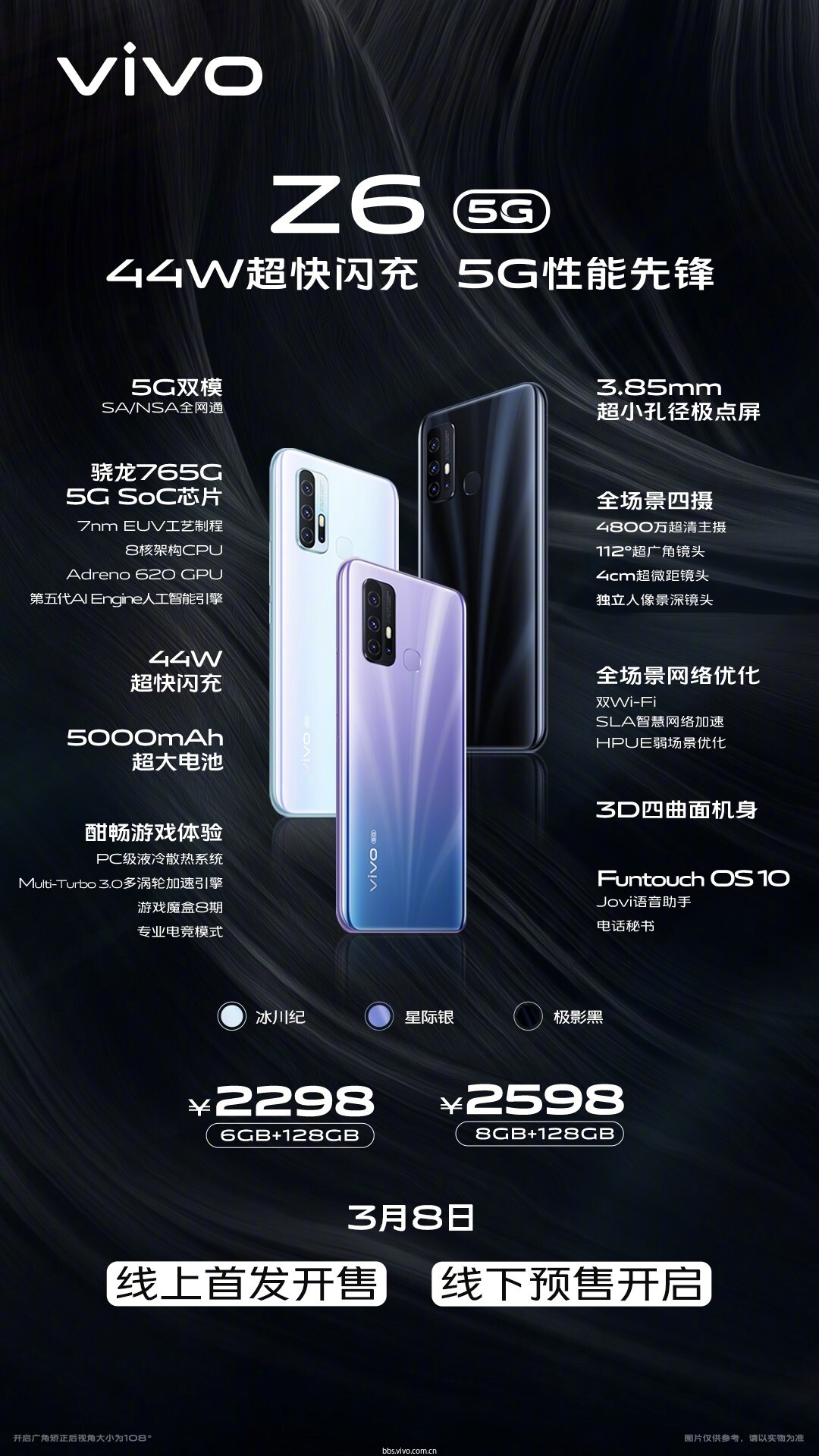 你的新手机有以下特点: 双模5G,3款配色,44W超快闪充, 5000mAh大电池,PC级液冷散热, 你心心念念的这台【超能学霸】, 今天线上首发开售啦!