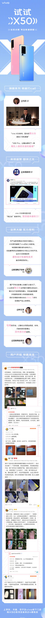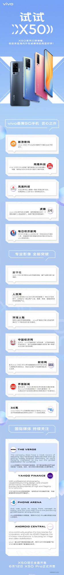 央视盛赞,明星打Call,全民点赞,海内外权威媒体高度好评!X50 火热开售中,6月12日X50 Pro 全面开售。你要不要“试试 X50”?
