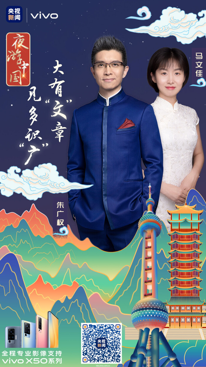 夜游中国,精彩夜色。6月5日晚8点,央视新闻客户端及央视新闻全平台账号,由朱广权和马文佳联动多路总台央视记者、vivo X50系列全程专业影像支持,带您夜游中国。