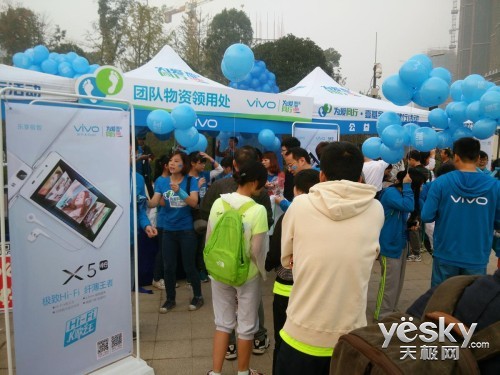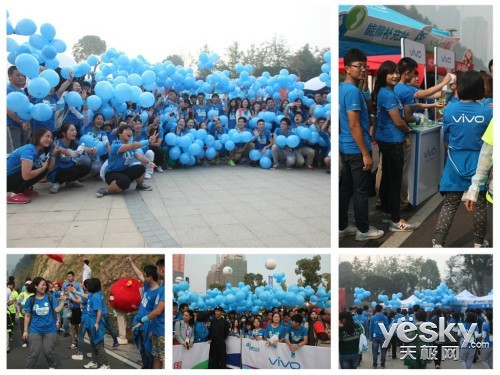起点处vivo补给点vivo全球副总裁兼首席市场官冯磊先生为健行者加油“为爱同行•壹基金2014(长沙)健行活动”共有450支队伍、1800人参与挑战,其中vivo共召集了包括vivo全球副总裁兼首席市场官冯磊先生和vivo长沙新声代公司总经理罗润明先生在内的共214名员工和V粉,组成41个小组共同为爱行走。在路程上,相比深圳站的49.8公里,长沙站线路稍短,总长36公里,但却被誉为长沙“最美”路线:一湖(梅溪湖)、一江(湘江)、一桥(橘子洲大桥)、两山(桃花岭、岳麓山),最终到达橘子洲,而vivo则分别在起点、8.95公里的第二补给点、26.33公里的第六补给点和终点为参赛者准备了补给物资、医疗物资等,帮助选手更好的完成比赛。