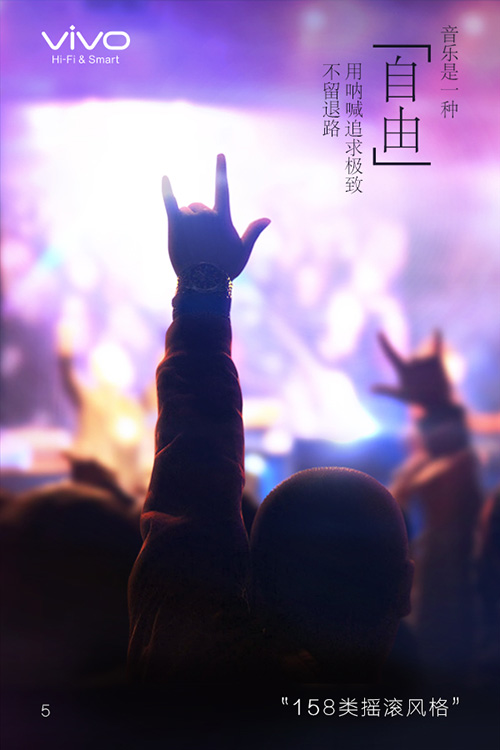 在品牌建设中,vivo也一直以“乐享极智”为品牌主张,和追求乐趣、充满活力、年轻时尚的城市群体,一起打造拥有卓越外观、专业级音质、极致影像、愉悦体验的智能产品,并将敢于追求极致、持续创造惊喜作为vivo的坚定追求。通过助力腾讯《Hi歌》、优酷《音乐带你去旅行》、MTV享乐派音乐会等音乐节目,不断为品牌建设加码。