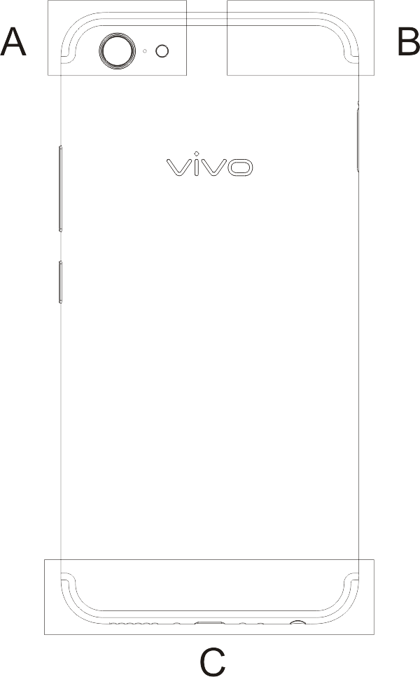 A: GPS/Wi-Fi;B: 主天线; C:分集天线。