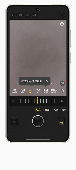 PRO:提供专业参数ISO、快门速度、EV、光圈模拟虚化调节、AF/MF对焦切换、AWB白平衡等调整。