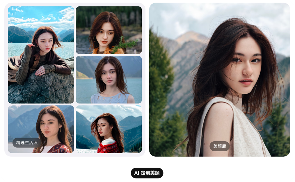 OriginOS 6部分机型支持AI定制美颜,智能识别您过往照片中的人像特征、分享偏好、美颜偏好、妆容风格,只需一次性学习修图习惯,便可生成专属的定制美颜效果,实现一键极速美颜,打造独属自己的真实自然美。