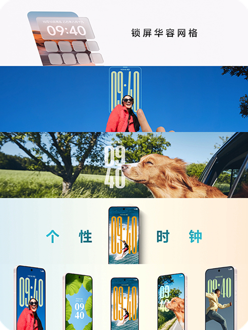 OriginOS 6支持全新锁屏主题《个性时钟》,你可以自由拖动时钟在锁屏网格间移动,让时间、日期等重要信息一目了然。