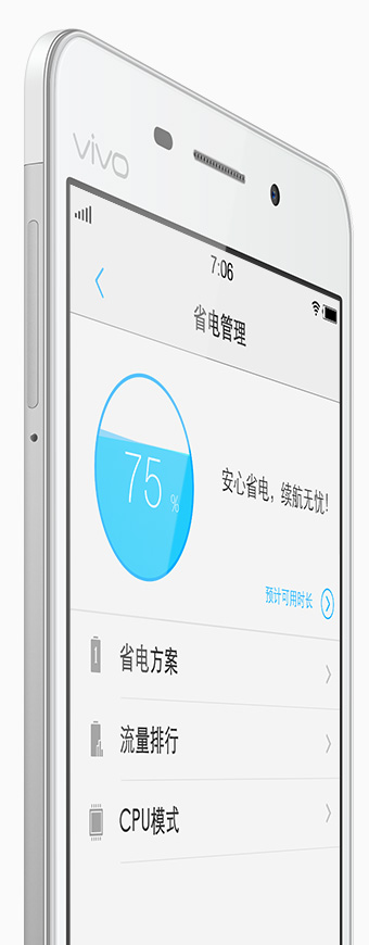 - 持续待机数据来源于 vivo 实验室,测试条件为:常规模式下 5G+Wi-Fi 灭屏待机,微信后台每小时接受 100 条消息。通话时长数据来源于 vivo 实验室,测试条件为:移动 5G 网络,屏幕处于灭屏状态,使用听筒模式,至大音量。实际续航时长可能因使用环境条件,测试设置不同存在差异,请以实际使用体验为准。